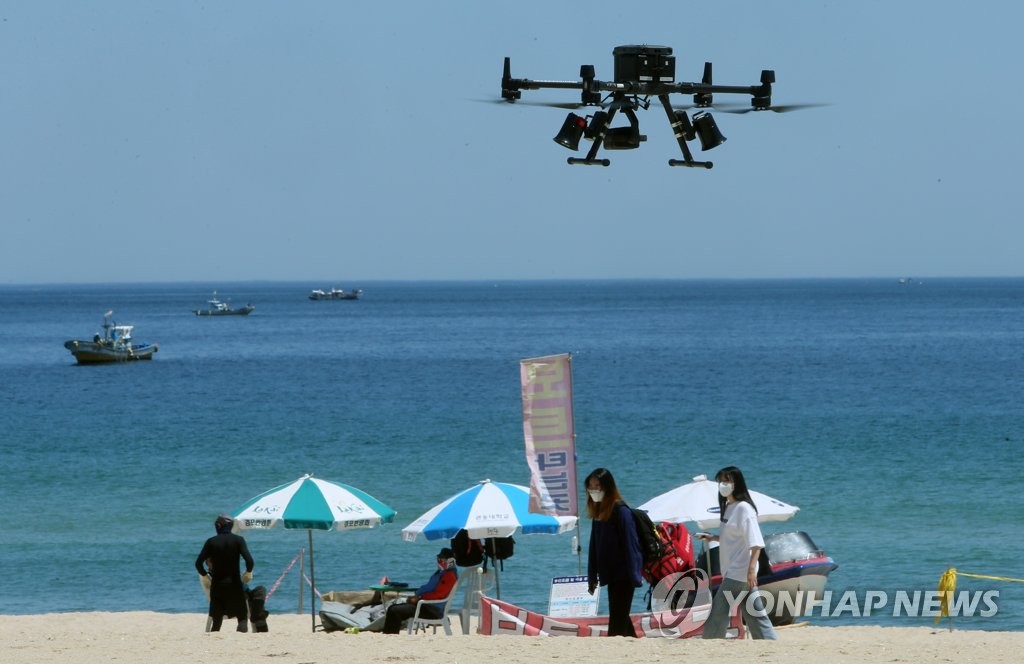 (강릉=연합뉴스) 배연호 이해용 이종건 기자 = 7월 초 개장할 강원 동해안 주요 해수욕장에 안전사고 예방과 신종 코로나바이러스 감염증(코로나19) 방역을 위한 드론이 투입되고 피서객 발열체크를 위한 체온 스티커가 도입된다.