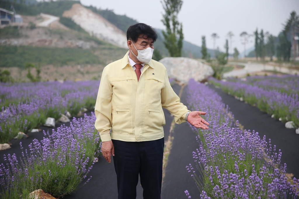| ▲ 심규언 동해시장이 무릉3지구 라벤더 정원을 살펴보고 있다. [동해시 제공·재판매 및 DB 금지] |