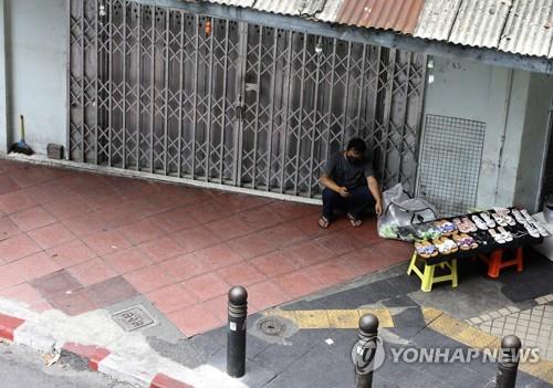 | ▲ 봉쇄 조치로 문을 닫은 방콕 시내 상점 앞에서 손님을 기다리는 노점상. 2021.7.12 [EPA=연합뉴스] |