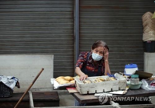| ▲ 문 닫은 방콕 시내 상점 앞에서 야채 장수가 손님을 기다리고 있다. 2021.3.16 [EPA=연합뉴스] |