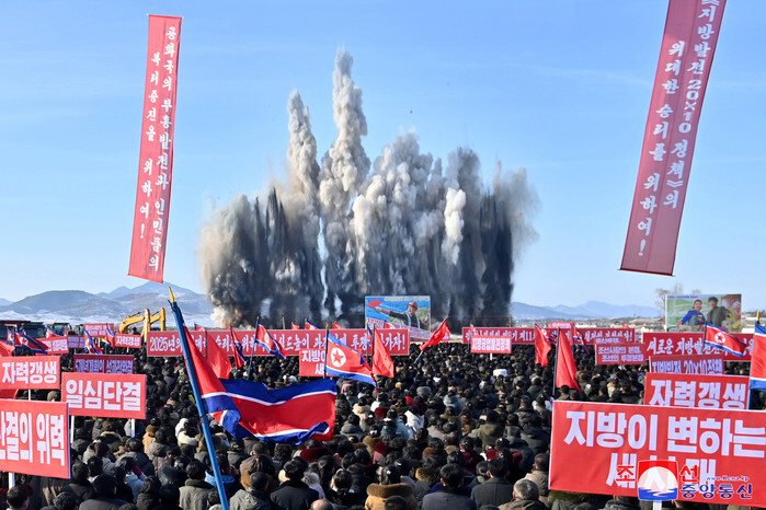 North Korean residents take part in a groundbreaking ceremony in Ryonggang County, Nampho, on the North's west coast, on Feb. 9, 2025, for a regional factory and a hospital, in this photo released by the North's official Korean Central News Agency the next day. The construction is part of a project that the North's leader Kim Jong-un set forth in January 2024 to build modernized factories in 20 cities and counties over the next decade to enhance the living standards of the people. (For Use Only in the Republic of Korea. No Redistribution) (Yonhap)