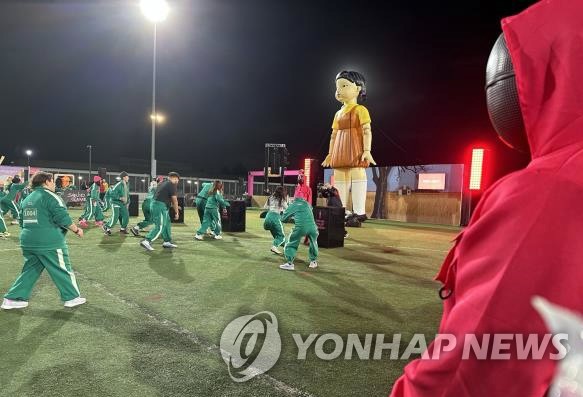 ▲ LA에서 열린 '오징어게임' 팬 이벤트 '무궁화꽃이 피었습니다' (로스앤젤레스=연합뉴스) 임미나 특파원 = 지난 12일(현지시간) 밤 미국 로스앤젤레스(LA)에서 열린 '오징어 게임' 팬 이벤트에서 참가자들이 '무궁화꽃이 피었습니다' 게임을 하고 있다. 2024.12.14 mina@yna.co.kr