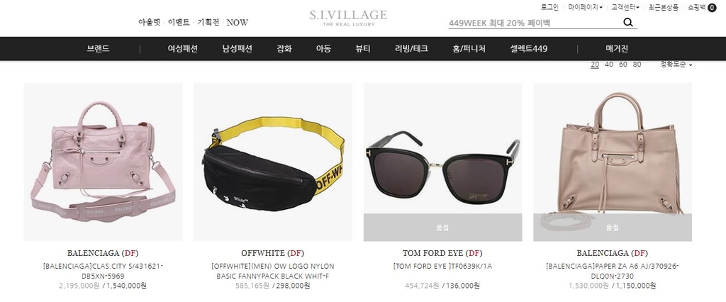 | ▲ 에스아이빌리지 재고 면세품 판매 화면 [에스아이빌리지 홈페이지 캡처. 재판매 및 DB 금지] |