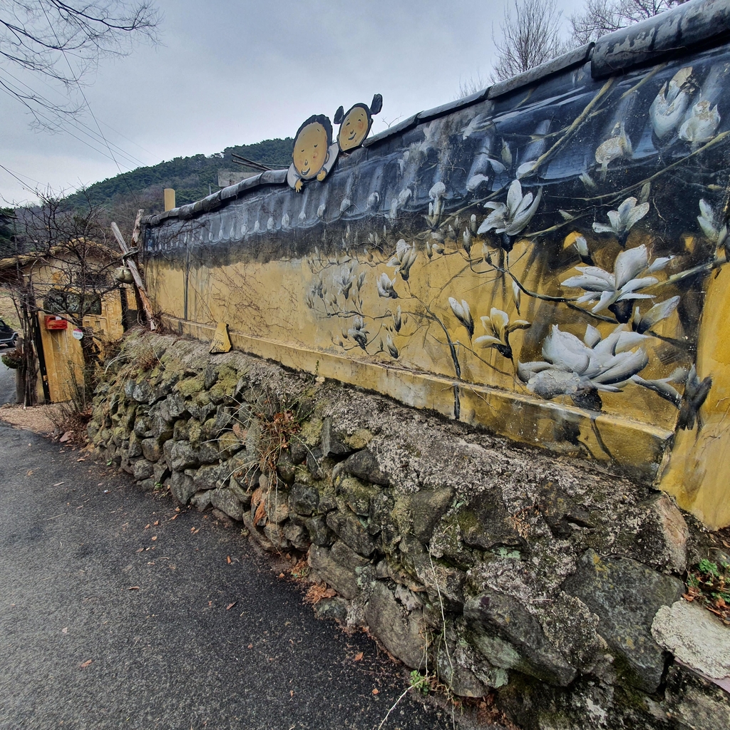 벽화도 벽화지만 상당수의 집 지붕이 초가로 꾸며졌다. 그래서 기와 일색인 인흥 마을이 귀족적이라면 이곳은 서민적인 느낌이 강하게 든다.