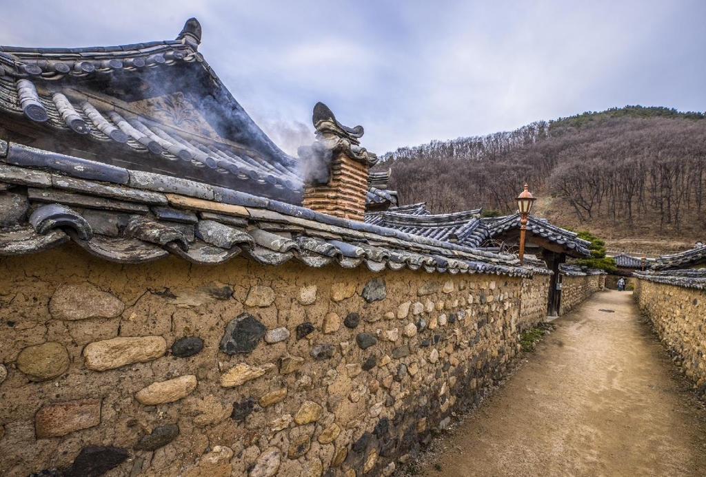 | ▲ 길게 뻗은 흙돌담 위로 연기가 피어오르고 있다. [사진/성연재 기자] |