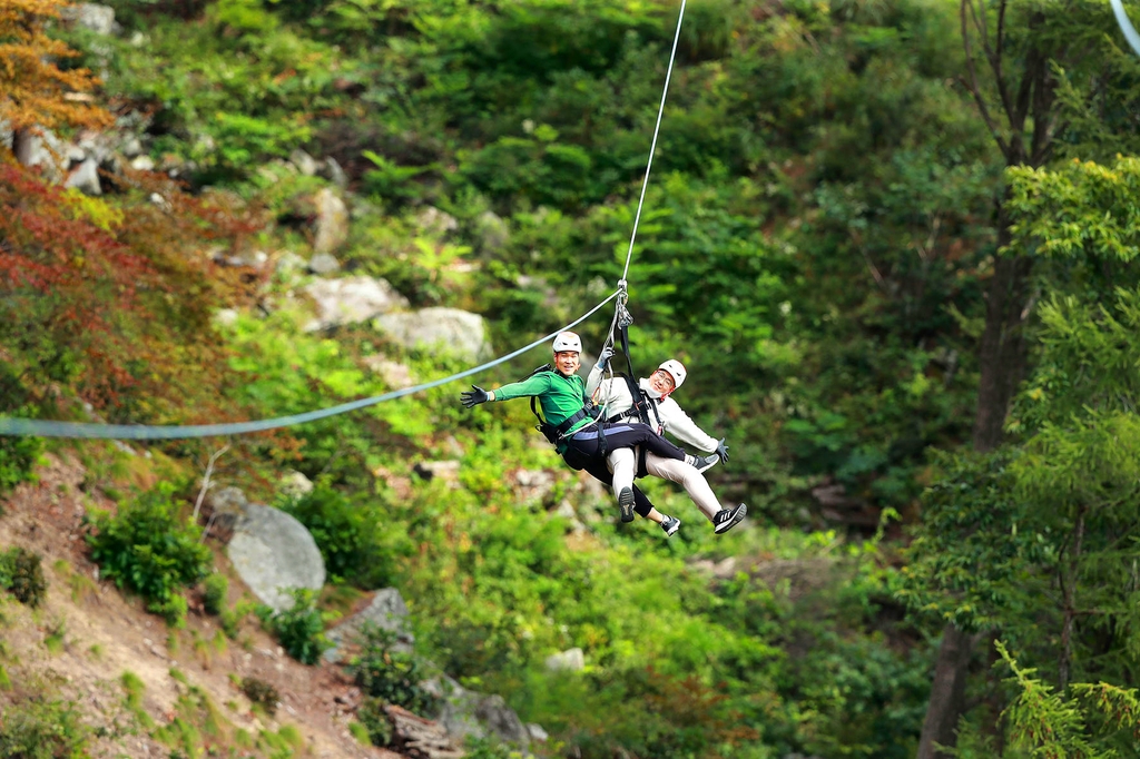다시 모노레일을 타고 내려올 수도 있지만, 스릴을 만끽하고 싶다면 집라인을 체험해 보자.