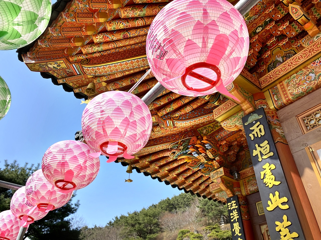 사천왕상과 아치형 석굴처럼 생긴 대방광문을 지나면 화려한 대웅전과 이 절의 백미인 석굴 법당이 나온다.