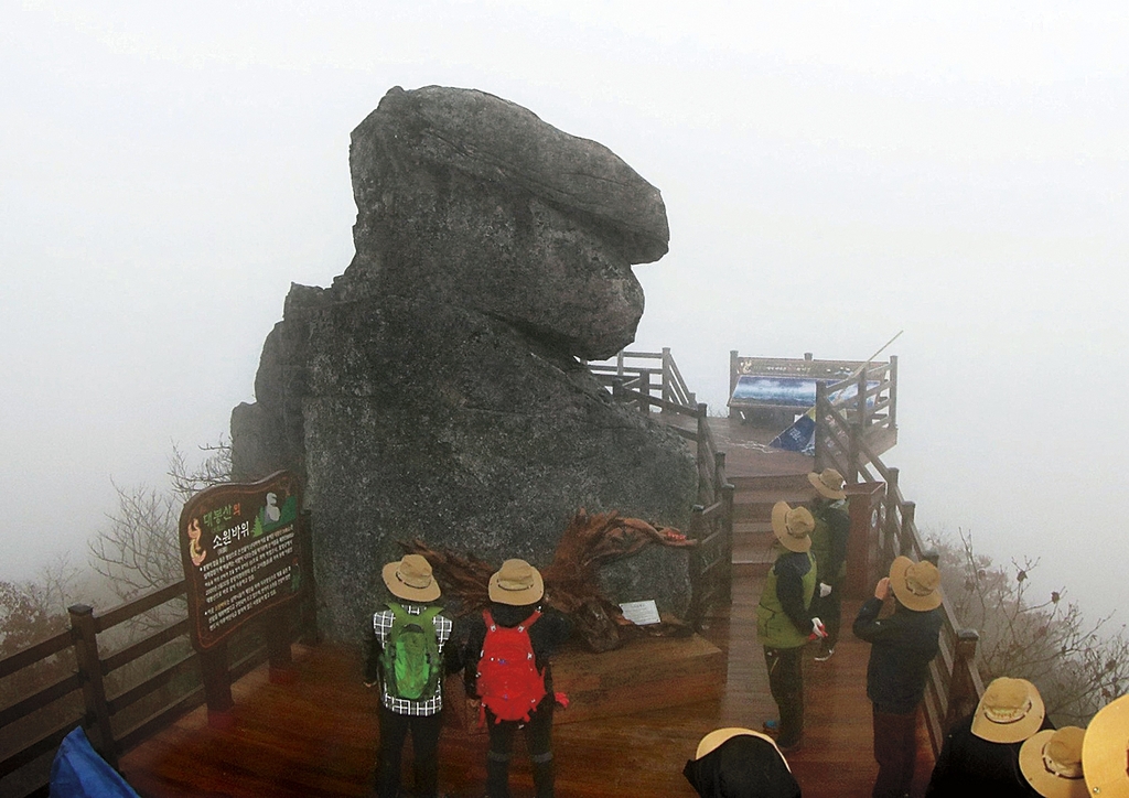 30여 분을 달려 정상에 도착하니 멋진 자태로 우뚝 서 있는 소원바위가 기다리고 있다. 소원바위는 심마니들이 산삼을 채취하기 전 제를 올리던 곳이다.
