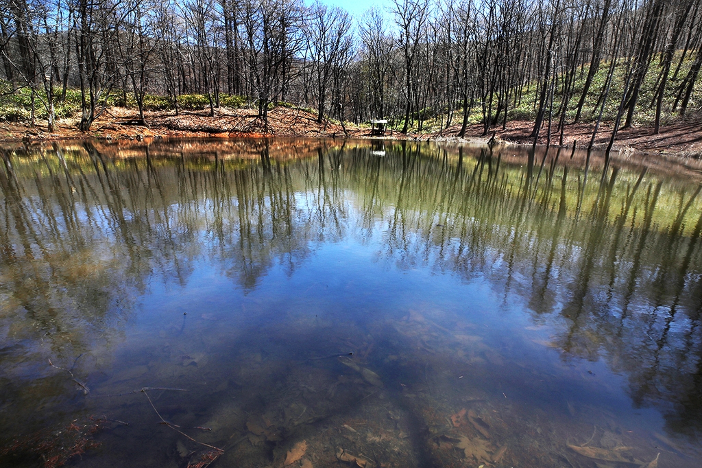 1177갱을 지나면 도롱이 연못이 나온다. 이 연못은 탄광 갱도가 침하하면서 생겼다.