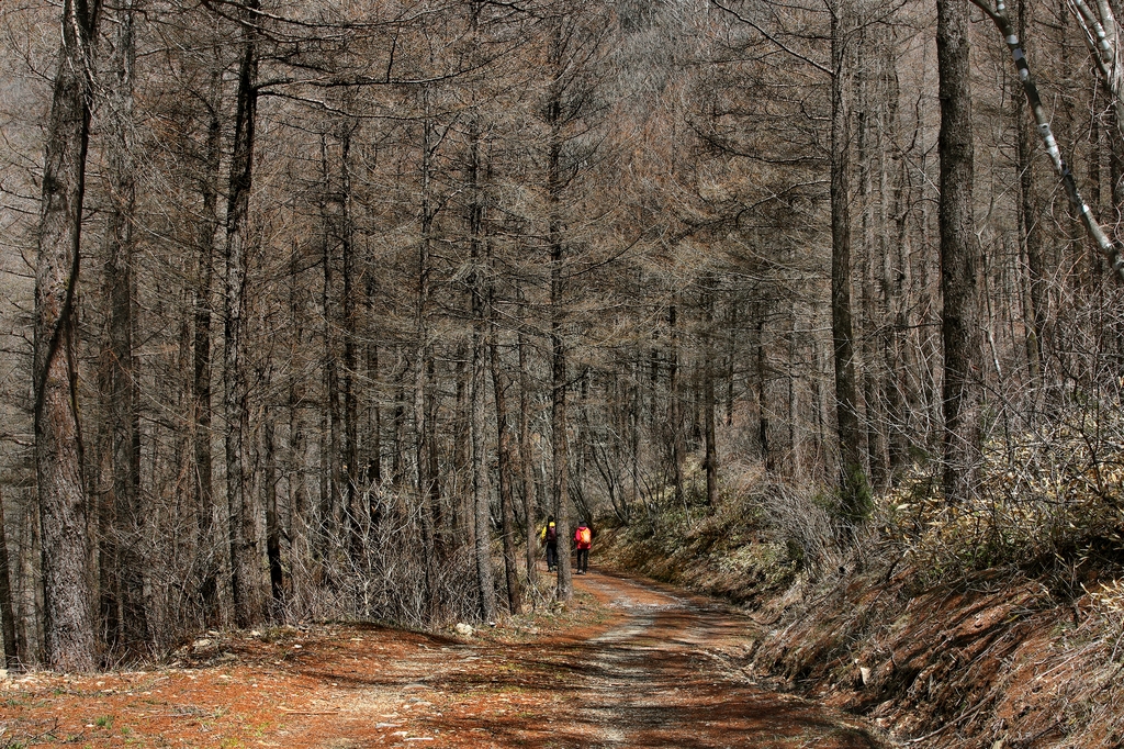 가지를 옆으로 뻗지 않고 하늘을 향해 쭉쭉 자라 수형이 좋은 일본잎갈나무와 키 큰 신갈나무는 아직 새싹을 틔우지 못하고 헐벗은 채 서 있었다.