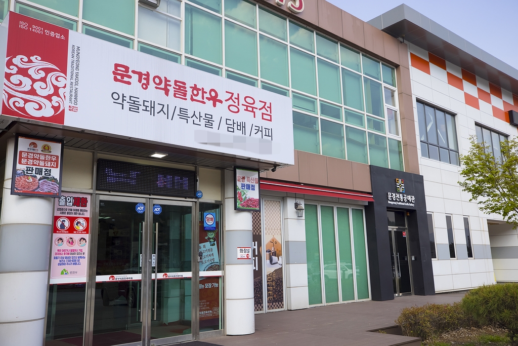 ▲ 공예전시관(오른쪽)과 나란히 영업 중인 문경약돌한우타운 [사진/성연재 기자]