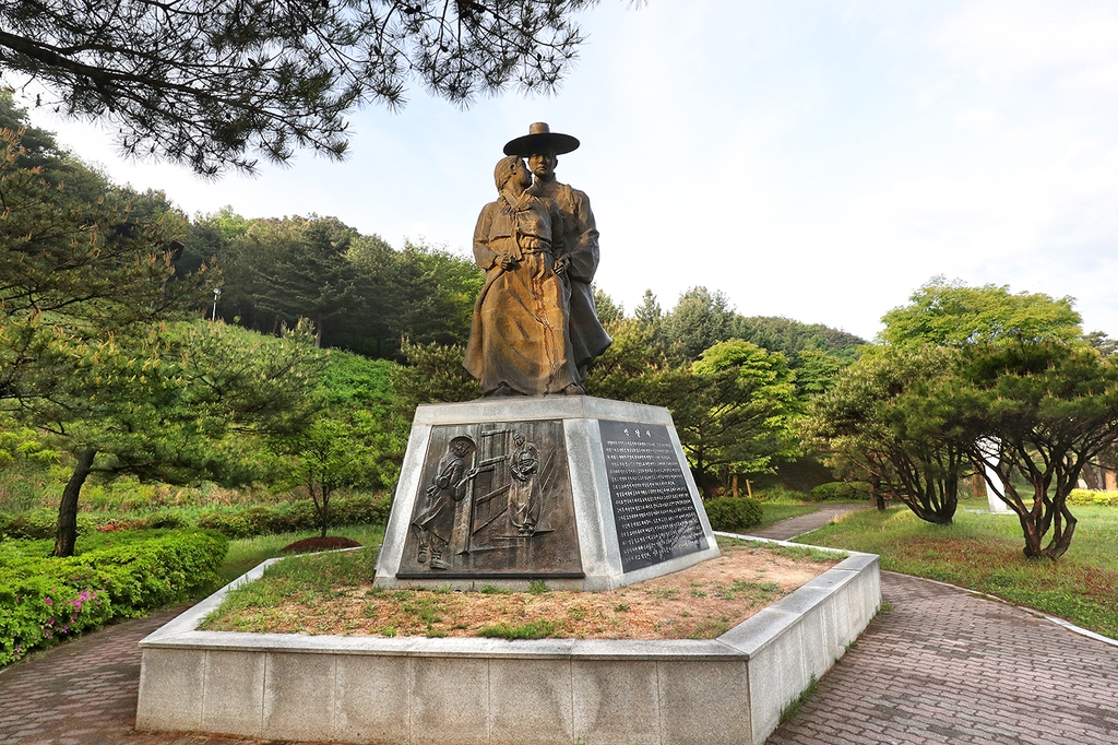 ▲ 박달재 전설의 주인공인 박달과 금봉 동상 [사진/조보희 기자]
