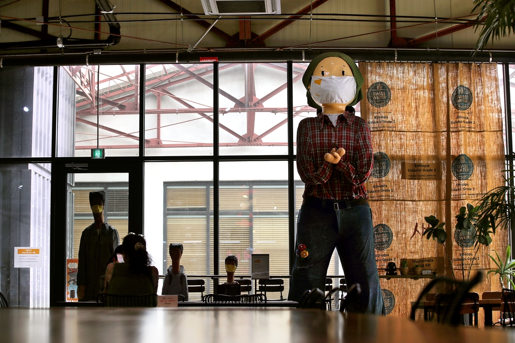▲ 카페 입구에 있는 거대한 인형은 이 공장에서 일했던 여공의 모습을 형상화했다. [사진/전수영 기자]