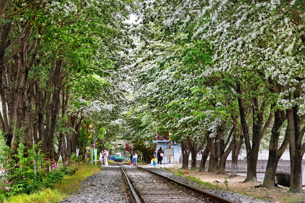 지금도 평일 오전에는 화물 열차가 하루 두세 차례 오간다. 덕분에 매년 늦은 봄이면 하얀 이팝나무 터널 아래로 열차가 지나가는 동화 같은 장면이 연출된다.