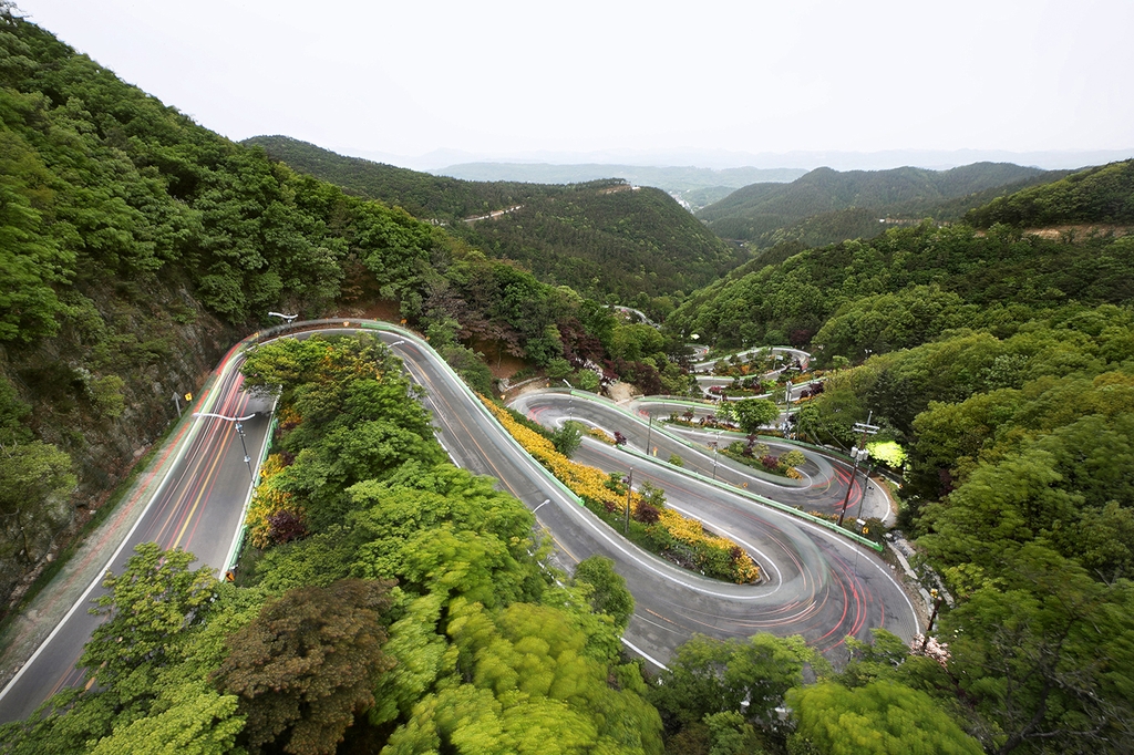 속력을 한껏 낮춰 구불구불한 도로를 따라 힘겹게 올라가는 차를 보니 마치 내 숨이 헐떡이는 것 같다.