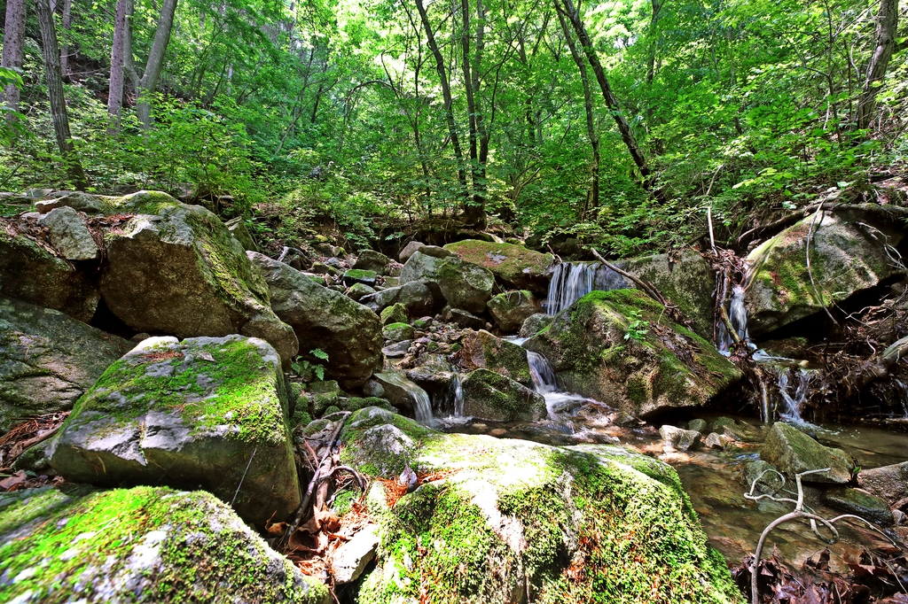 탐험코스는 여느 산행길과 비슷하다. 활엽수가 우거지고, 침엽수가 적당히 섞여 시원한 그늘을 만들고 있었으며 맑은 계곡이 내는 청량한 소리를 들으며 걸을 수 있었다.