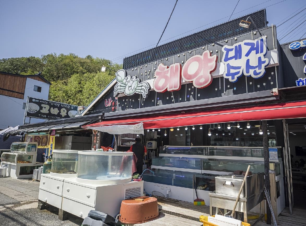 이곳저곳을 수소문한 결과 관광객들의 발길이 닿지 않는 부둣가 뒷골목의 작은 해산물 전문 식당 '해양대게수산'을 발견했다.