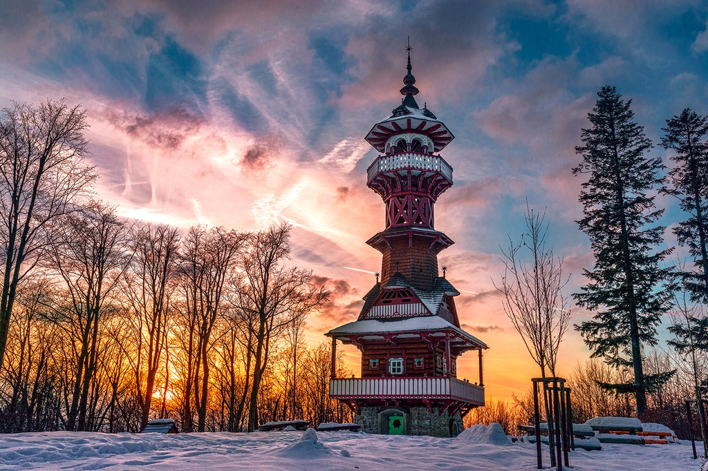 돌과 나무로 지어진 이 전망대는 4개의 박공지붕, 아기자기한 탑, 시선을 사로잡는 색감과 전형적인 체코 민속 요소들이 잘 어우러져 있다.