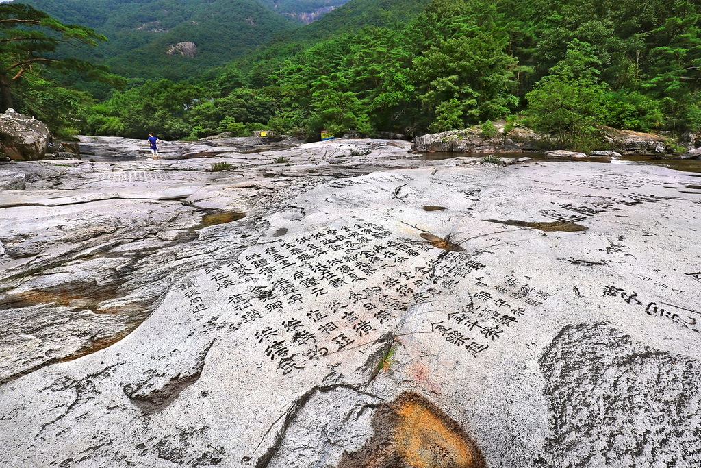 여름이면 수많은 피서객이 모여들어 물놀이를 즐긴다. 반석에는 옛사람들의 이름과 시는 물론이고, 그림까지 새겨져 있다. 글자 수는 800자를 넘는다.