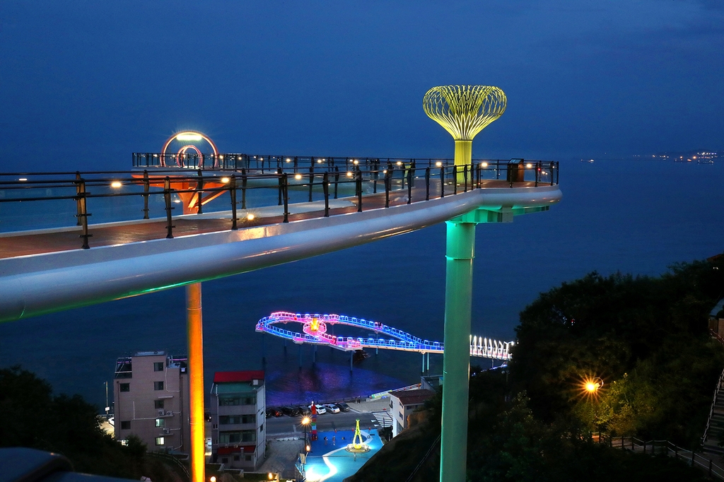 스카이워크에서 내려다보면 해랑이 장관이고, 해랑에서 올려다보면 스카이워크가 신비스럽다. 두 전망대가 어우러지는 야경은 특별했다.