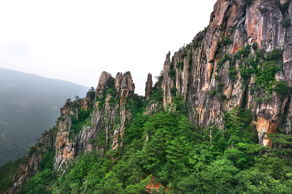 두타산 풍광의 압권은 마천루, 베틀바위에서 감상하는 협곡이다. 협곡은 울창한 숲과 장대한 바위로 이뤄져 있었다. 바위들은 엄청나게 크거나 바늘처럼 뾰족뾰족했다.
