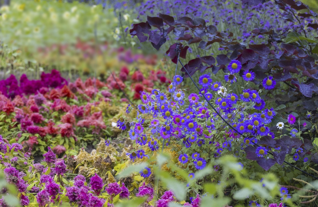 그 아래쪽에는 마치 촛불이 타는 듯한 모습을 보여주는 촛불 맨드라미가 활짝 폈다. 우리나라 대표 가을꽃인 구절초, 쑥부쟁이, 좀개미취 등도 만개한 채 손님을 기다리고 있다.