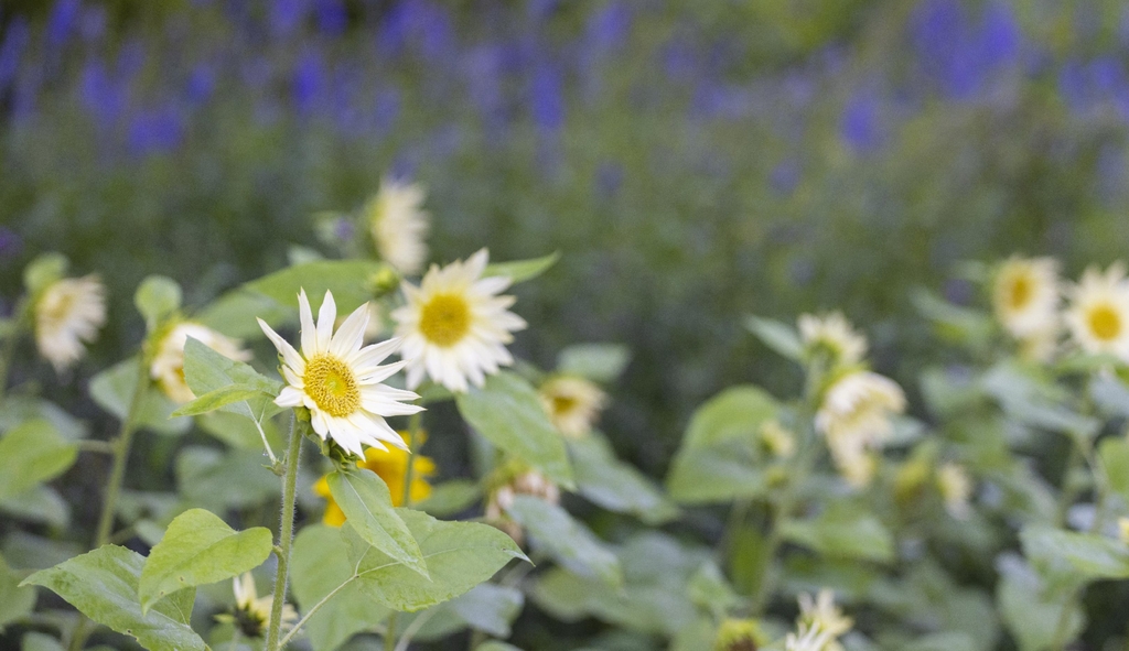 방문객들을 처음 맞이하는 꽃들은 가을을 맞아 활짝 핀 키 작은 옅은 옥색의 코스모스다. 그래서 이름도 제이드 해바라기다. 일반적인 해바라기만큼 크지 않고 앙증맞다.