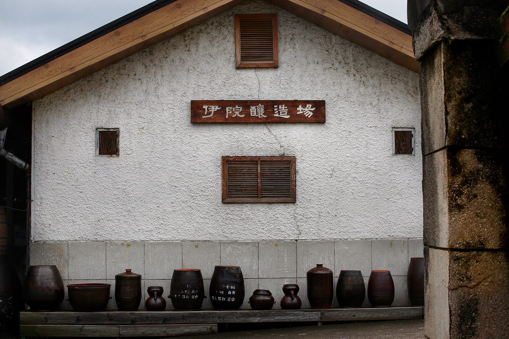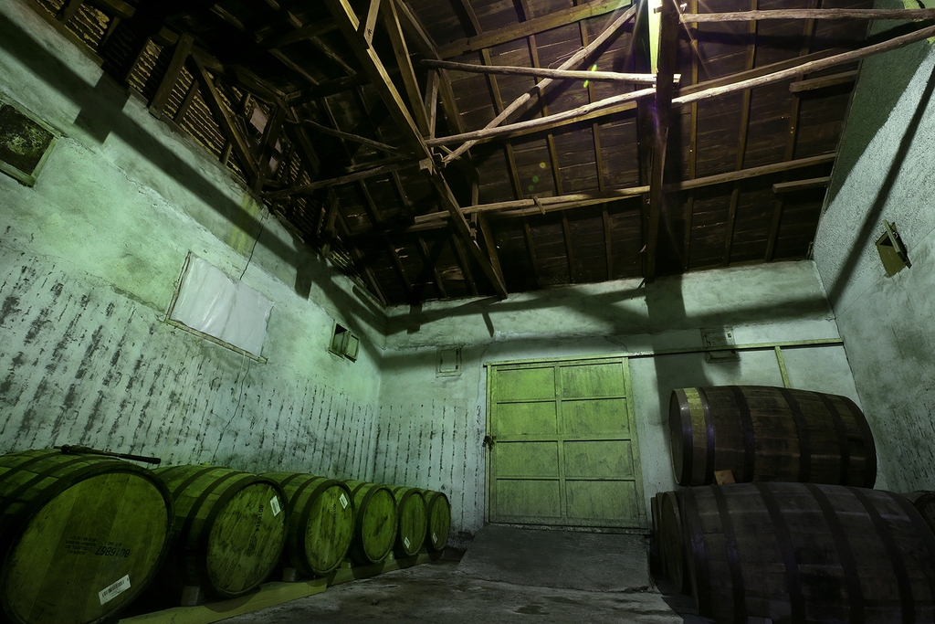 지붕을 받치고 있는 낡은 목제 기둥에도, 양쪽에 늘어서 있는 오래된 양조 도구들에도 세월의 흔적이 가득하다.