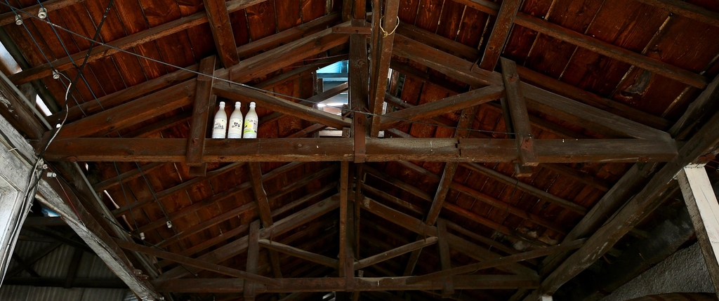 | ▲ 오크통 안에서 증류식 소주가 익어가고 있다.[사진/전수영 기자] |