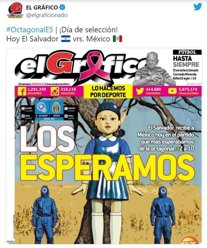 이와 함께 전날 멕시코와 엘살바도르의 2022 카타르월드컵 북중미 예선경기를 앞두고 홈팀 엘살바도르 신문 1면에 '오징어 게임' 속 이미지가 등장하기도 했다.
