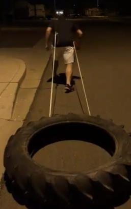 | ▲ 타이어 끄는 최지만 탬파베이 최지만이 대형 타이어 끌기 훈련을 하고 있다. [최지만 트위터 캡처. 재배포 및 DB 금지] |