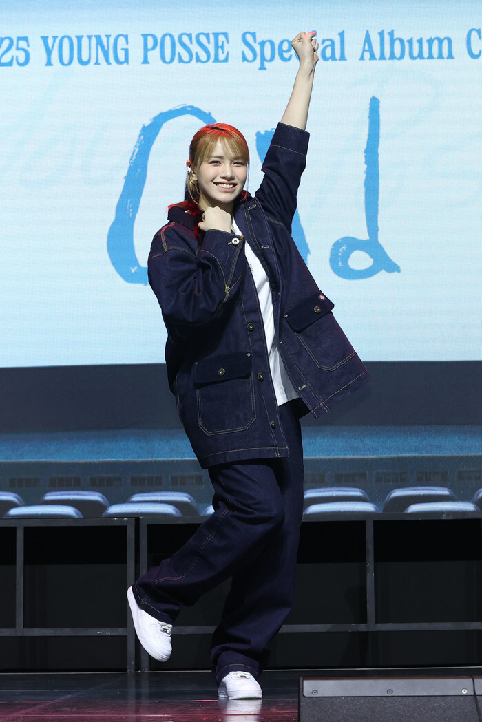Doeun, a member of South Korean girl group Young Posse, poses for a photo during a showcase for the group's special album "Cold" in Seoul on March 4, 2025. (Yonhap)