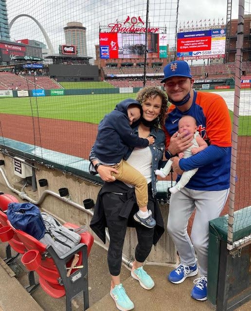 | ▲  Ricky Meinhold (R) poses with his family at Busch Stadium in St. Louis while working as an assistant pitching coach for the New York Mets, in this undated photo provided by Meinhold. (PHOTO NOT FOR SALE) (Yonhap) |