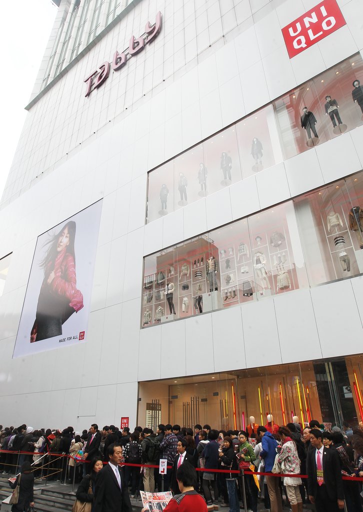 | ▲ 유니클로 명동중앙점 유니클로의 서울 명동중앙점이 2011년 11월 개장 당시 사람들이개장을 기다리는 모습. |