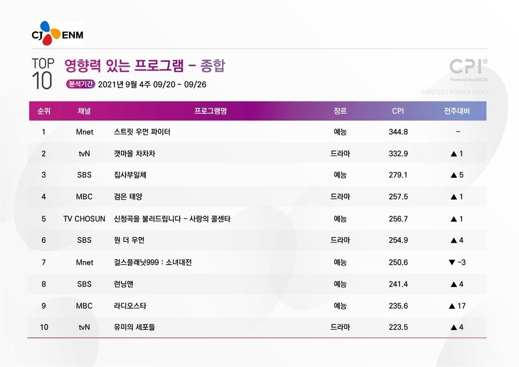 ▲ 9월 넷째 주 CPI 리포트 [CJ ENM 제공. 재판매 및 DB 금지]