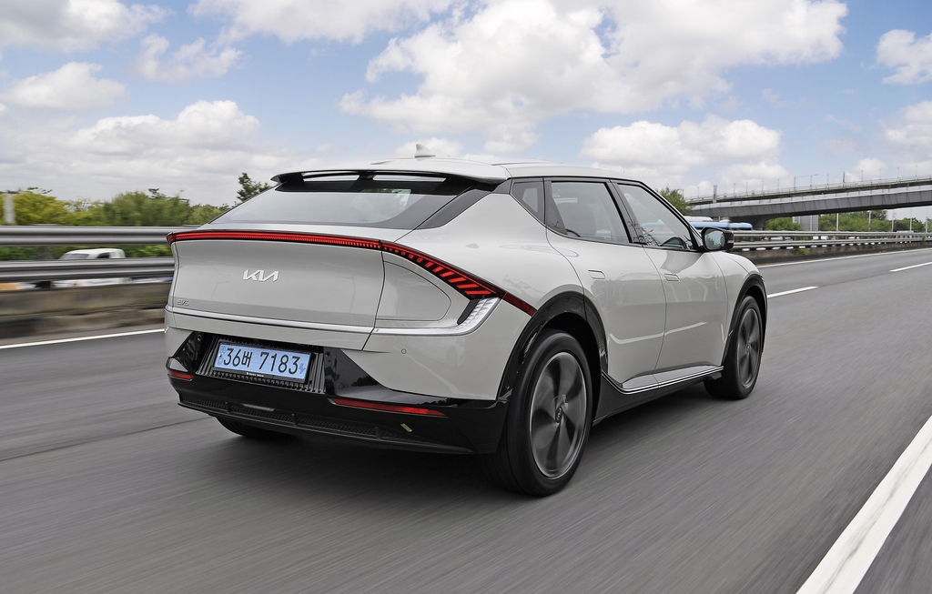 포니와 닮은 모습에도 낯선 미래차의 느낌을 풍겼던 현대차[005380]의 아이오닉 5와 달리 EV6는 한결 익숙한 모습에 매끄러운 곡선으로 서글서글한 인상을 풍겼다. 이 때문인지 도로 위에서도 존재감을 과하게 드러내기보다 이질감 없이 스며들었다.