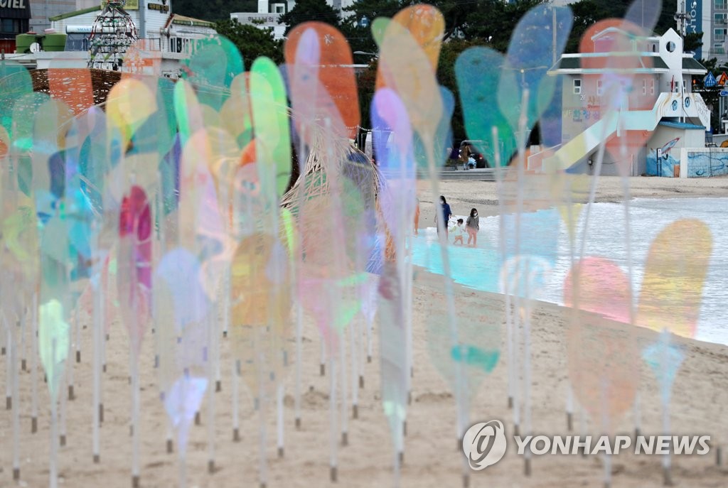 | ▲ 2021 바다미술제 설치작품 (부산=연합뉴스) 손형주 기자 = 부산 기장군 일광해수욕장에 설치된 2021 바다미술제 작품.