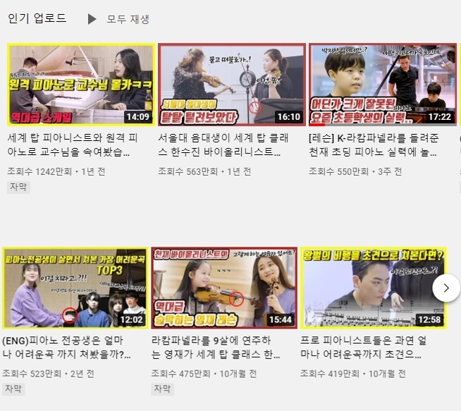 이외에도 기타, 국악, 성악, 작곡 등 다양한 음악 장르를 담은 영상도 선보인다.