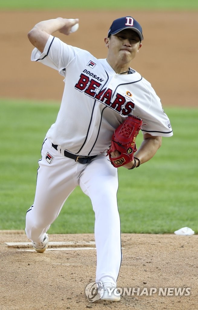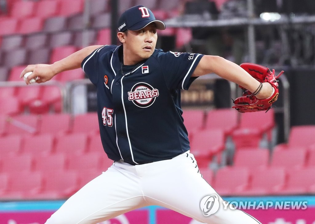 ▲ In this file photo from May 28, 2020, Lee Yong-chan, then of the Doosan Bears, pitches against the SK Wyverns in the top of the first inning of a Korea Baseball Organization regular season game at Jamsil Baseball Stadium in Seoul. (Yonhap)