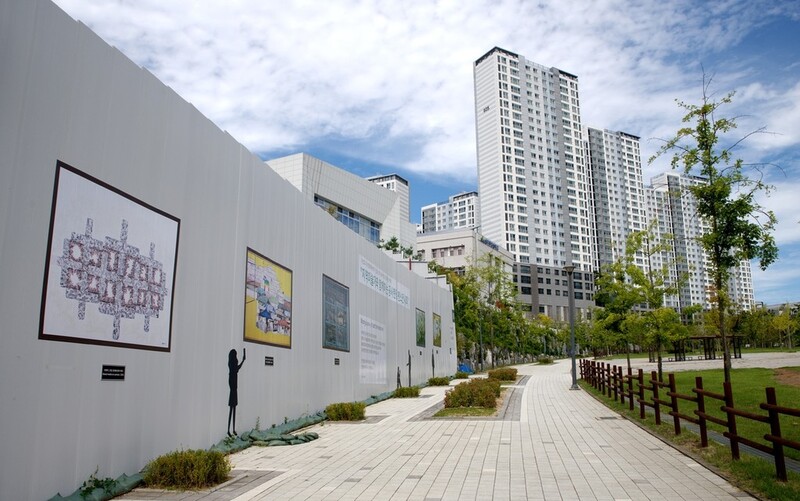 지난해 착공한 이 공사 현장의 가림막에 미술 작품을 설치한 기획 전시로, 준공 전까지 이어진다.