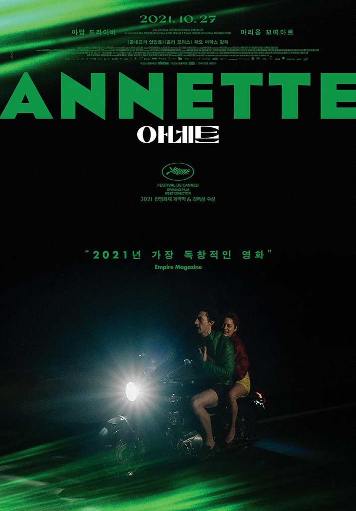 '아네트'는 오페라 가수 앤(마리옹 코티야르)과 스탠드업 코미디언 헨리(아담 드라이버)에게 특별한 딸 아네트가 생기며 일어나는 일을 담은 뮤지컬 영화로, 카락스 감독이 '홀리 모터스' 이후 9년 만에 내놓은 신작이다.