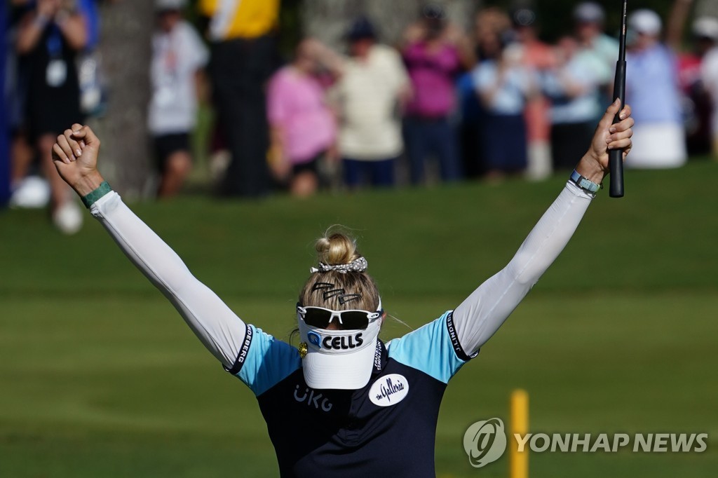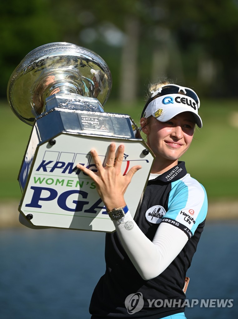 (서울=연합뉴스) 최인영 기자 = 넬리 코르다(23·미국)가 생애 첫 메이저대회 우승컵을 들어 올리며 여자골프 세계랭킹 1위에 올랐다.