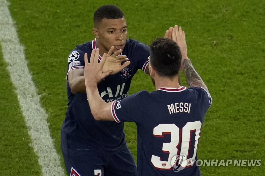 | ▲ 페널티킥 득점 자축하는 메시(오른쪽)와 음바페 [AP=연합뉴스] |