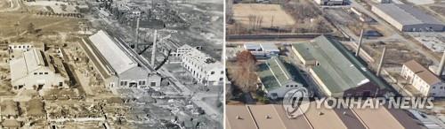 | ▲ 캠프마켓에 남아있는 조병창 공장 건물 2019년 말 촬영한 캠프마켓 내 조병창 공장 3개 동의 모습(사진 오른쪽). 왼쪽 사진은 1946년 촬영된 같은 공장 건물. [인천 부평역사박물관 제공. 재판매 및 DB 금지] |