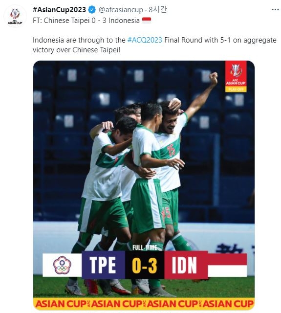 | ▲ 인니, 아시안컵 PO 2차전서 대만에 3-0 완승 [아시안컵 2023 트위터 캡처. 재판매 및 DB 금지] |
