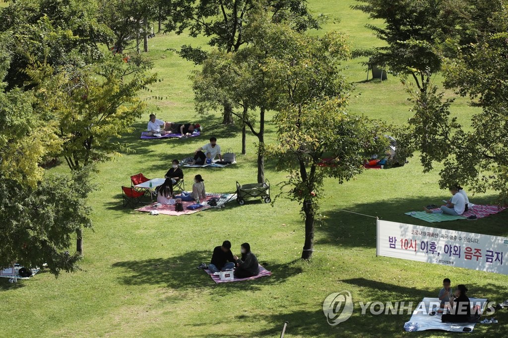 | ▲ Families and groups of people enjoying picnics under government-mandated social distancing guidelines at a park on the banks of the Han River in Yeouido, western Seoul, in the Sept. 12, 2021, file photo. (Yonhap) |