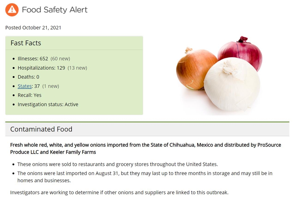 FDA는 문제의 양파가 지난 7월1일부터 8월31일까지 미국에 들어왔다며 "양파는 최대 3개월까지 보관 가능하기 때문에 해당 제품이 아직도 식품점이나 레스토랑 또는 각 가정에 남아있을 수 있다"고 주의를 당부했다.