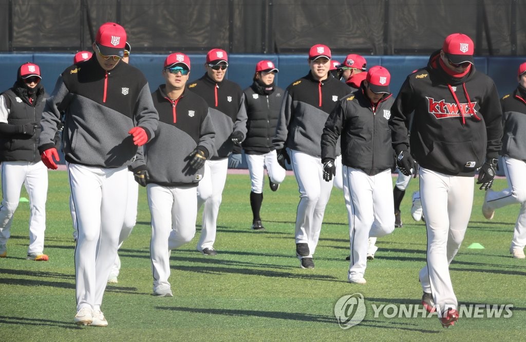 ▲ Members of the KT Wiz train at Gijang-Hyundai Motor Dream Ballpark in Busan, 450 kilometers southeast of Seoul, on Feb. 2, 2021. (Yonhap)