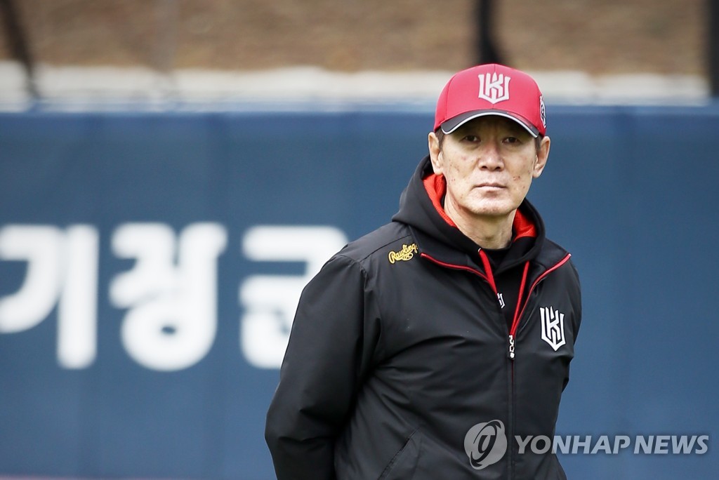 ▲ This photo provided by the KT Wiz on Feb. 6, 2021, shows the club's manager, Lee Kang-chul, during spring training at Gijang-Hyundai Motor Dream Ballpark in Busan, 450 kilometers southeast of Seoul. (PHOTO NOT FOR SALE) (Yonhap)