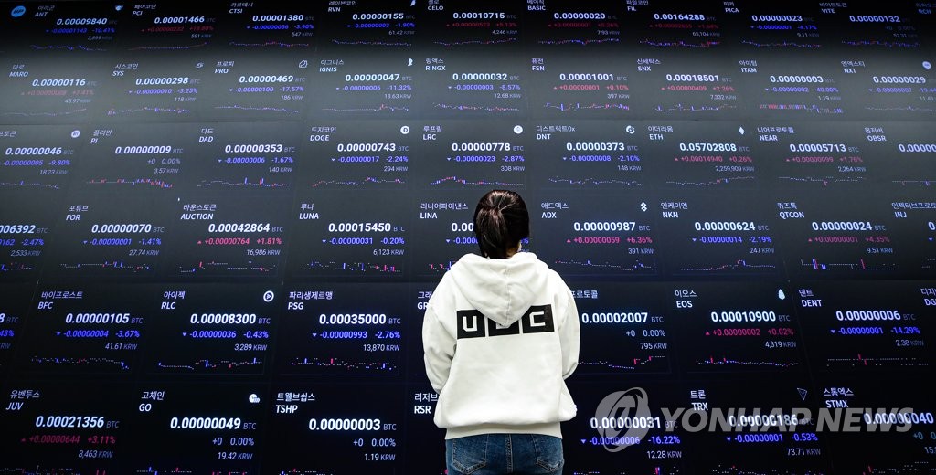 | ▲ 업비트 라운지 6월 28일 서울 강남구 업비트 라운지의 전광판에 가상화폐 거래 상황이 표시돼 있다. [연합뉴스 자료사진] |